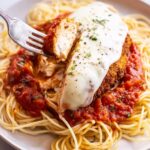 Classic spaghetti or linguine tossed in olive oil or light marinara is a great choice. Rice, garlic bread, or roasted vegetables also complement this dish well, balancing the rich, cheesy chicken.