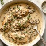 Return the chicken and mushrooms to the skillet, spoon some gravy over the top, cover, and let everything simmer gently on low for 5 more minutes. This makes sure the chicken stays moist and the flavors marry beautifully.