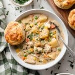 - Serve with warm biscuits on top or on the side for the true pot pie experience.