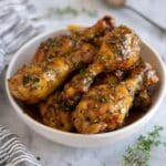 This Slow Cooker Dijon-Thyme Chicken Legs Recipe freezes beautifully, which is perfect for batch cooking. Portion the chicken and sauce into freezer-safe containers or bags, then thaw overnight in the fridge before reheating. I like to freeze a batch so I always have a quick dinner ready to go.