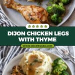 For a special dinner, try plating the chicken legs atop a bed of buttery polenta or wild rice pilaf, then drizzle the thickened Dijon-thyme sauce over everything. Adding edible flowers or microgreens can add a surprise visual wow that guests will love. I once served this at a family gathering and got asked for the recipe on the spot!