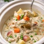 - This stew is a comforting, creamy dish that cooks itself slowly for tender chicken and veggies.