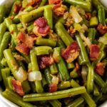 Delicious and easy Crock Pot Green Beans recipe featuring tender green beans cooked slowly with crispy bacon, onions, and garlic in a flavorful broth. This comforting side dish is enhanced with butter, Worcestershire sauce, and optional brown sugar for a perfect balance of savory and slightly sweet flavors.