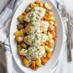 Slow Cooker Ranch Chicken & Veggies is a hearty, one-pot meal featuring tender chicken breasts cooked alongside diced potatoes and carrots in a flavorful homemade ranch seasoning. The dish is finished with a creamy ranch yogurt sauce, making it an easy, wholesome dinner that requires minimal prep and uses the slow cooker to keep everything moist and delicious.