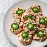 - Assemble and serve: Spoon about 1 heaping tablespoon of spicy tuna on each crispy rice piece. Garnish with black sesame seeds and a thin slice of jalapeño. Drizzle with extra spicy mayo if desired. Serve immediately.