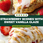 Strawberries and Cream Scones are tender, buttery pastries filled with fresh sweet strawberries and topped with a luscious vanilla glaze. Perfect for breakfast or an afternoon treat, these scones combine the richness of cream and butter with a light, crumbly texture and a hint of sweetness from fresh fruit.