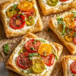 These Tomato Tartlets with Puff Pastry are a delightful combination of flaky, golden pastry topped with a creamy ricotta mixture and vibrant mini heirloom tomatoes. Perfect as an appetizer or light snack, they blend fresh basil, garlic, and oregano for a savory Mediterranean flavor profile that is both elegant and easy to prepare.