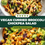 A vibrant and nutritious Vegan Curried Broccoli Chickpea Salad featuring finely chopped broccoli, chickpeas, carrots, toasted almonds, and a flavorful tahini curry dressing. Perfect as a light lunch or side dish, this salad is naturally plant-based, packed with protein and fiber, and easy to prepare in under 30 minutes.