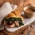 For a festive touch, I’ve done these wraps as party finger foods—cut smaller, stacked with mini side bowls of gravy for dipping, and arranged on a wooden platter. They also make a great lunchbox treat wrapped in parchment paper with a little gravy container on the side. It’s a playful way to enjoy Sunday flavors during the week.